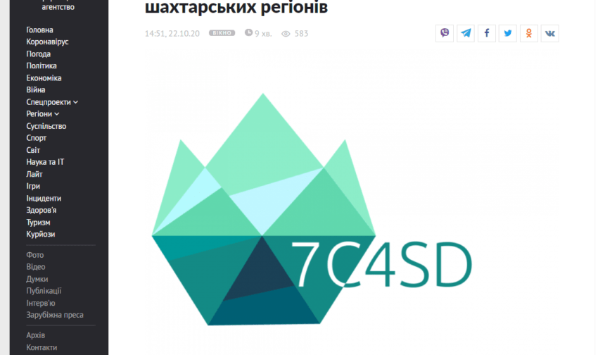 Posted 22 Жовтня 2020Публікація бачення Платформи процесу справедливої трансформації шахтарських регіонів. Публікація в новинних агенствах (УНІАН, Укрінформі), поширення серед журналістів
